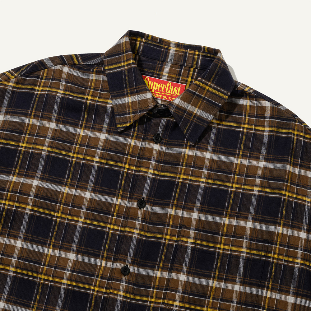 (SUPERFAST X HANKOOK TIRE) STAMPA FLANNEL CHECK SHIRT DARK BROWN