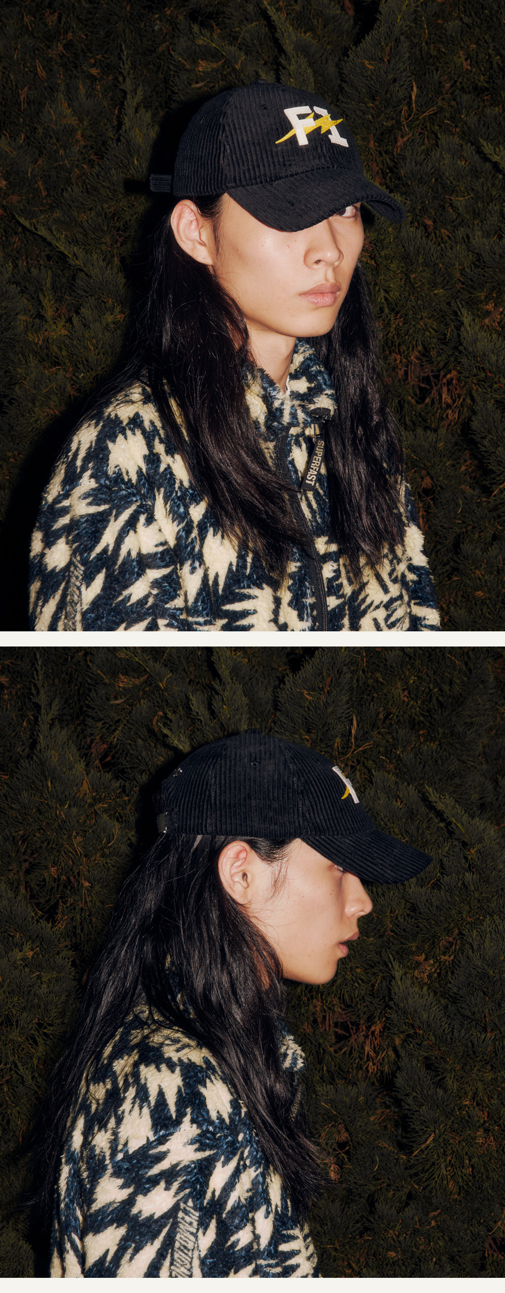 • 코듀로이 소재로 동그란 실루엣의 볼캡